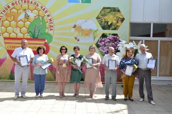 Рядом с Домом культуры расположилась медовая ярмарка. Пчеловодство у нас – довольно популярное занятие. Дело это, хоть и хлопотное, но имеет много своих почитателей. Некоторые из них передают секреты своего мастерства из поколения в поколение, создавая настоящие семейные династии. Мед по праву считается настоящим достоянием нашего района, недаром в честь него и был организован этот фестиваль, а на гербе нашего муниципального образования почетное место занимает труженица-пчела.