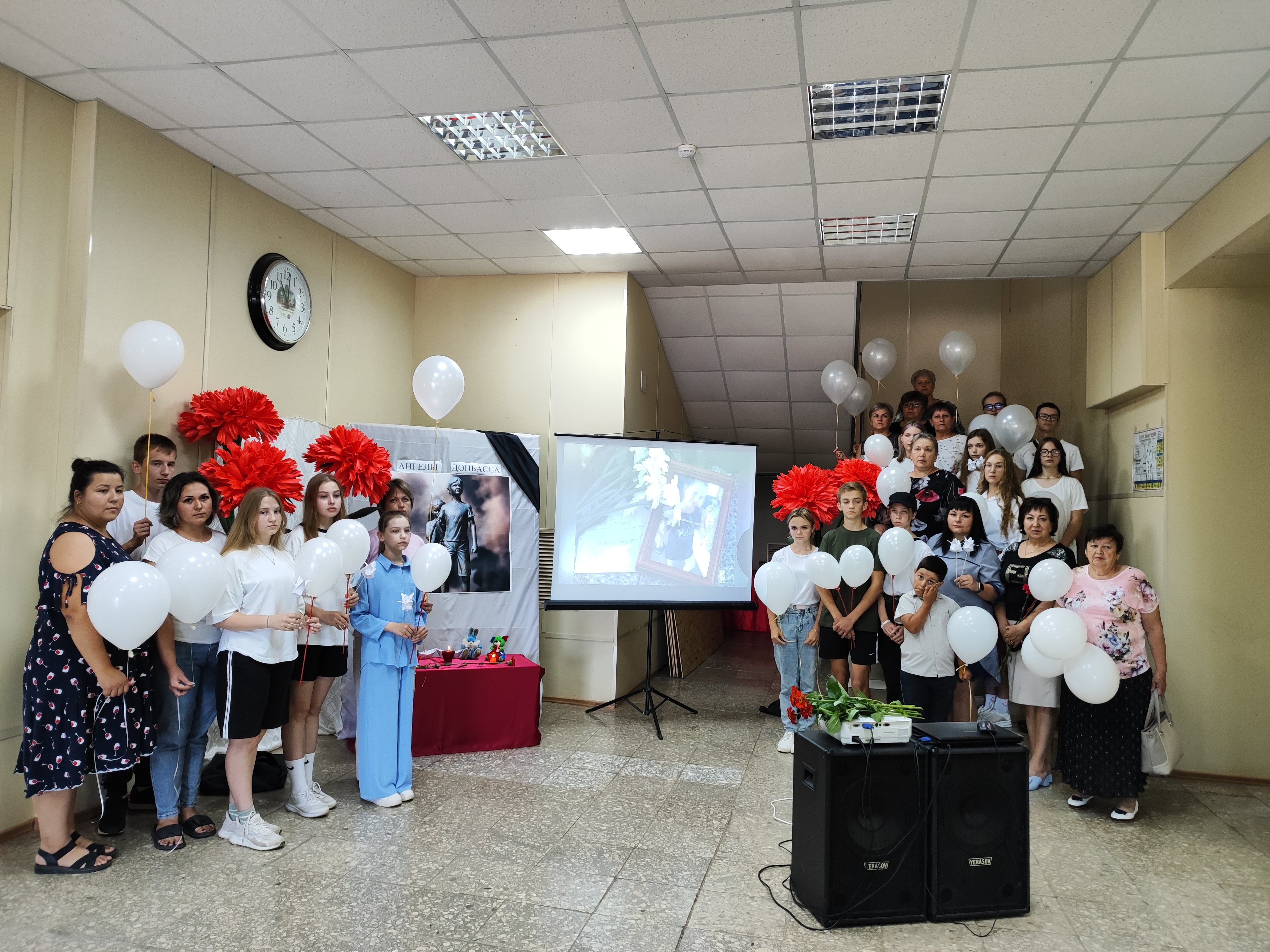 27 июля в Северном районном Доме культуры прошла памятная акция. Северяне почтили минутой молчания память маленьких ангелов, которых безжалостно вырвали из ласковых объятий родителей. Участники акции- взрослые и дети - возложили к импровизированному мемориалу символы памяти о погибших детях: бумажные журавлики, кораблики, белые воздушные шары и белые бумажные цветы.
